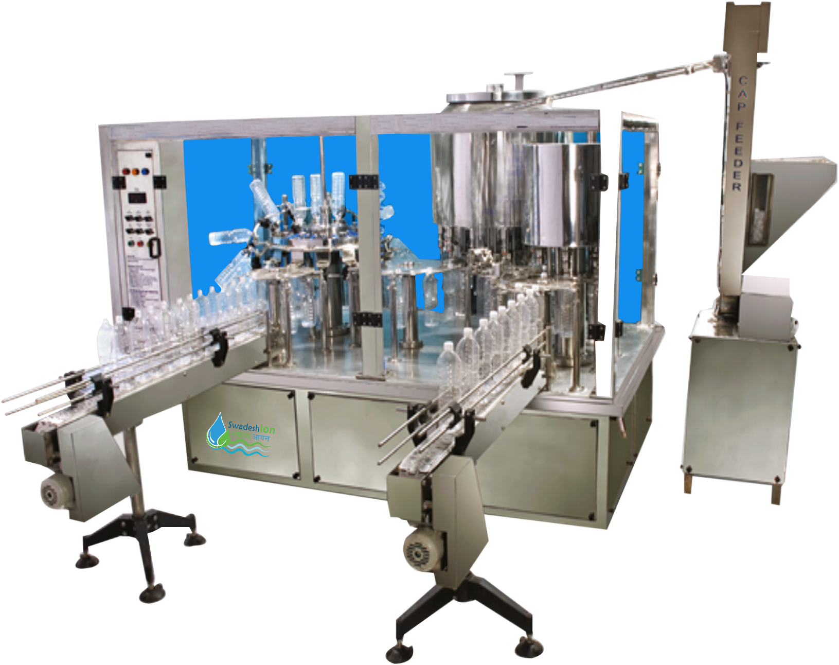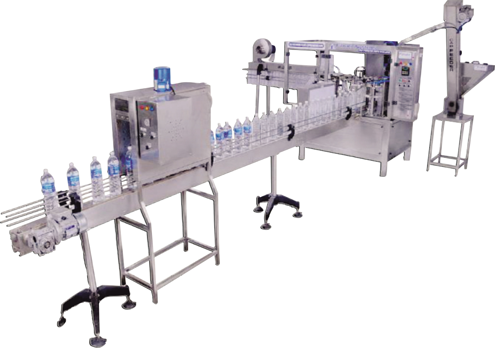 We developed the CGF 24-80-22 complete automatic blowing-filling and capping machine on the foundation of incorporating cutting-edge technology from around the world. This machine consists of a main blower, a heating stove, an auto-sending pre-form device, a filling system, and a capping system. It is also controlled pneumatically and electrically. The characteristics of this sort of machine are a high level of automation, stable specifications, efficient manufacture, and low cost. The CGF 24-80-22 full auto blowing-filling and capping machine is used extensively in PET containers for mineral water bottles, pure water bottles, soft drinks bottles, food bottles, and other items. It has attained an international standard for the same products.